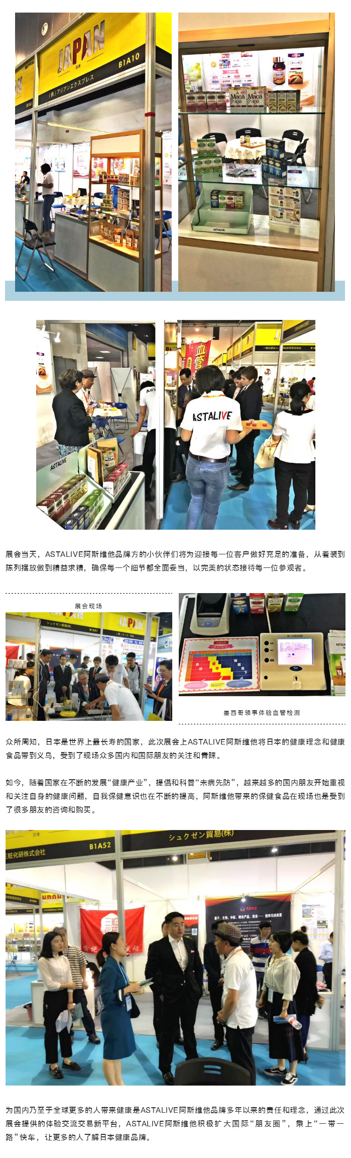 ASTALIVE阿斯维他将日本健康理念带到义乌进口商品展 更新时间:2020-08-17 点击:2003 所属栏目:行业动态 Update Time:2020-08-17 Hits:2003 Belong Column: